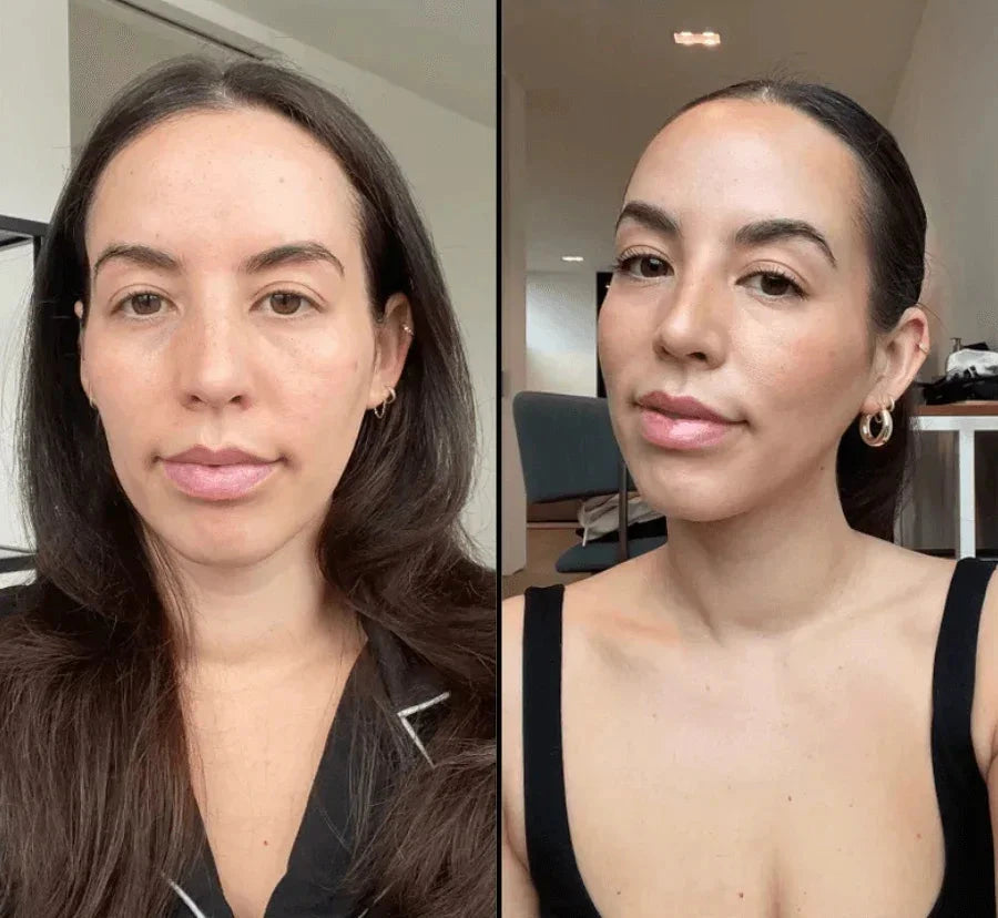 No. La fórmula liviana fue diseñada específicamente para no acumularse en líneas de expresión. El ácido hialurónico hidrata desde adentro. Clientas de 50-68 años reportan que se ven más frescas que con bases convencionales.